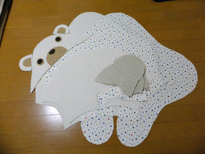 くまさんの顔を縫い、頭を縫い、体を縫って…