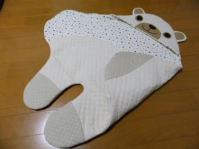 くまさんが赤ちゃんを包み込むような感じのおくるみをイメージ。